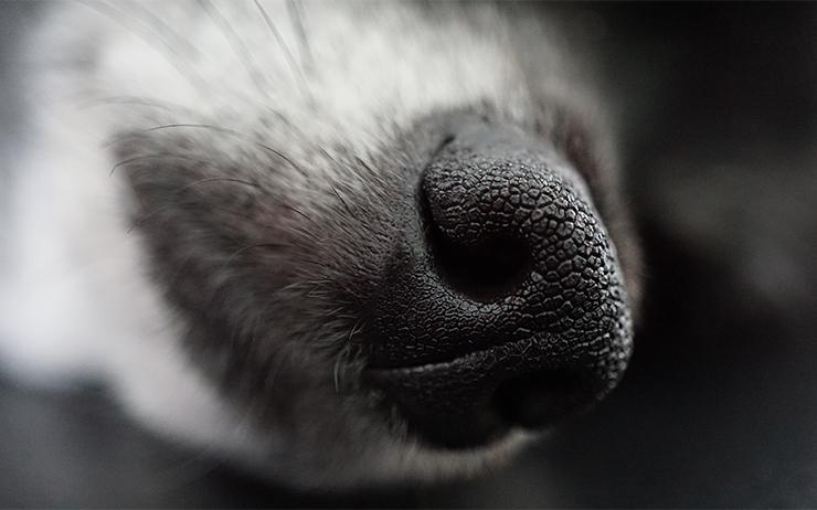 Hunde verfügen über einen sehr ausgeprägten Geruchssinn. Je nach Rasse besitzt ein Hund bis zu 300 Mio. Riechzellen. Wir Menschen hingegen müssen uns mit 10–30 Mio. Riechzellen begnügen. Die Riechschleimhaut der Hunde ist 30- bis 40-mal grösser als unsere. Dies gibt einen kleinen Einblick, wie viel differenzierter unsere Hunde die Geruchswelt wahrnehmen können. Für ein effektives Schnüffeln ist eine feuchte Nase Voraussetzung. Dafür sorgen zahlreiche Drüsen im Nasenbereich. Die Hauptaufgabe der Riechschleimhaut im Nasendach ist die Wahrnehmung von Gerüchen aus der Umgebung (Nahrungs-, Gefahrenquellen usw.).