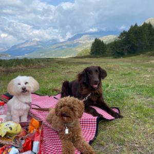 Wir sind immer wieder in de Bergen unterwegs mit unseren Collie-Damen Freya und Gisa. Hier gerade im Val Müstair im schönen Engadin :-) Wir würden uns riiiiesig freuen über ein tolles Wänderpäckli für unsere langen Trips im Engadin.