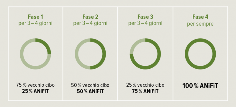 • Fase 4 (per tutta la vita dell'animale): 100% di cibo ANiFiT